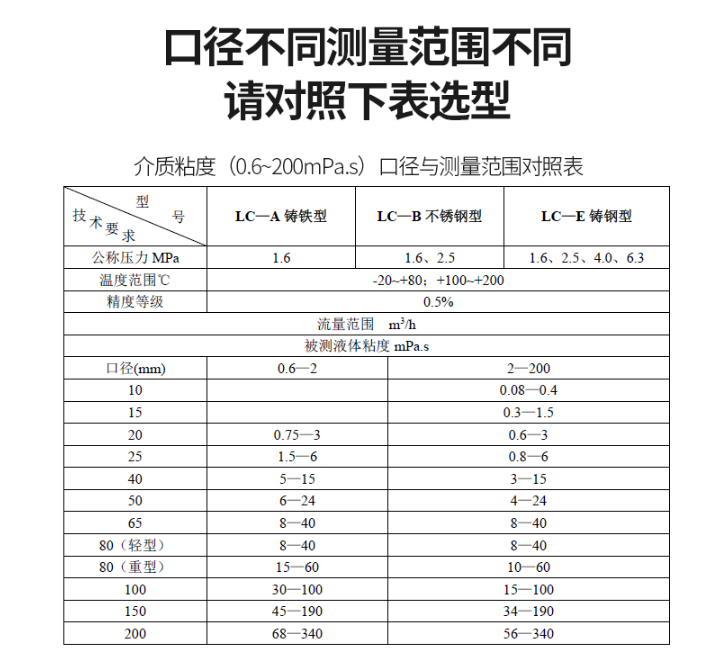 六、產(chǎn)品選型表: